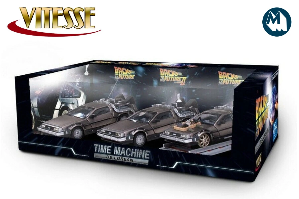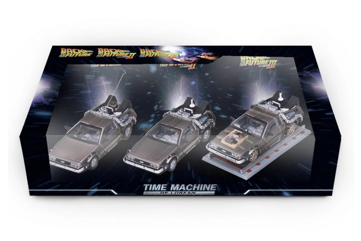 Three very impressive, highly detailed, 1:43 scale Delorean Time Machines. – One from each film.