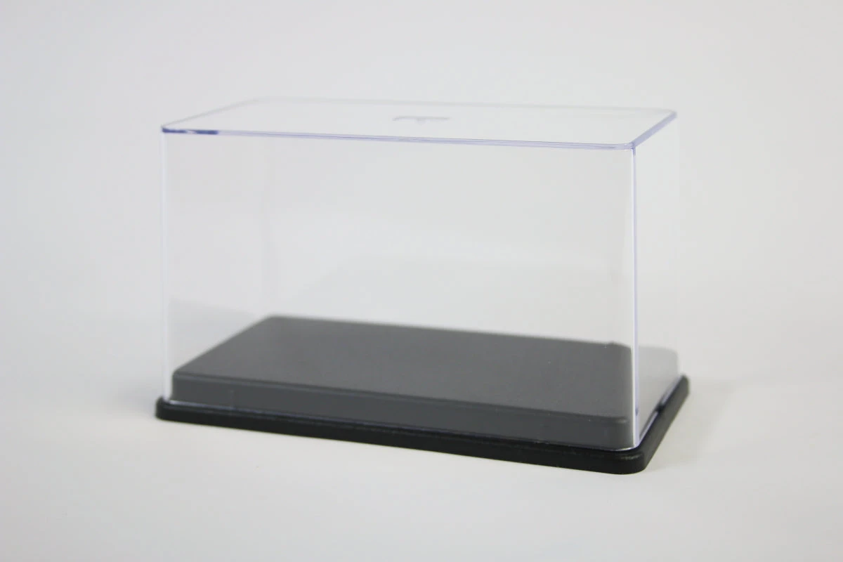 Single acrylic case with plastic base by Triple 9. Great for customs, or mini dioramas. The design allows them to be stacked.